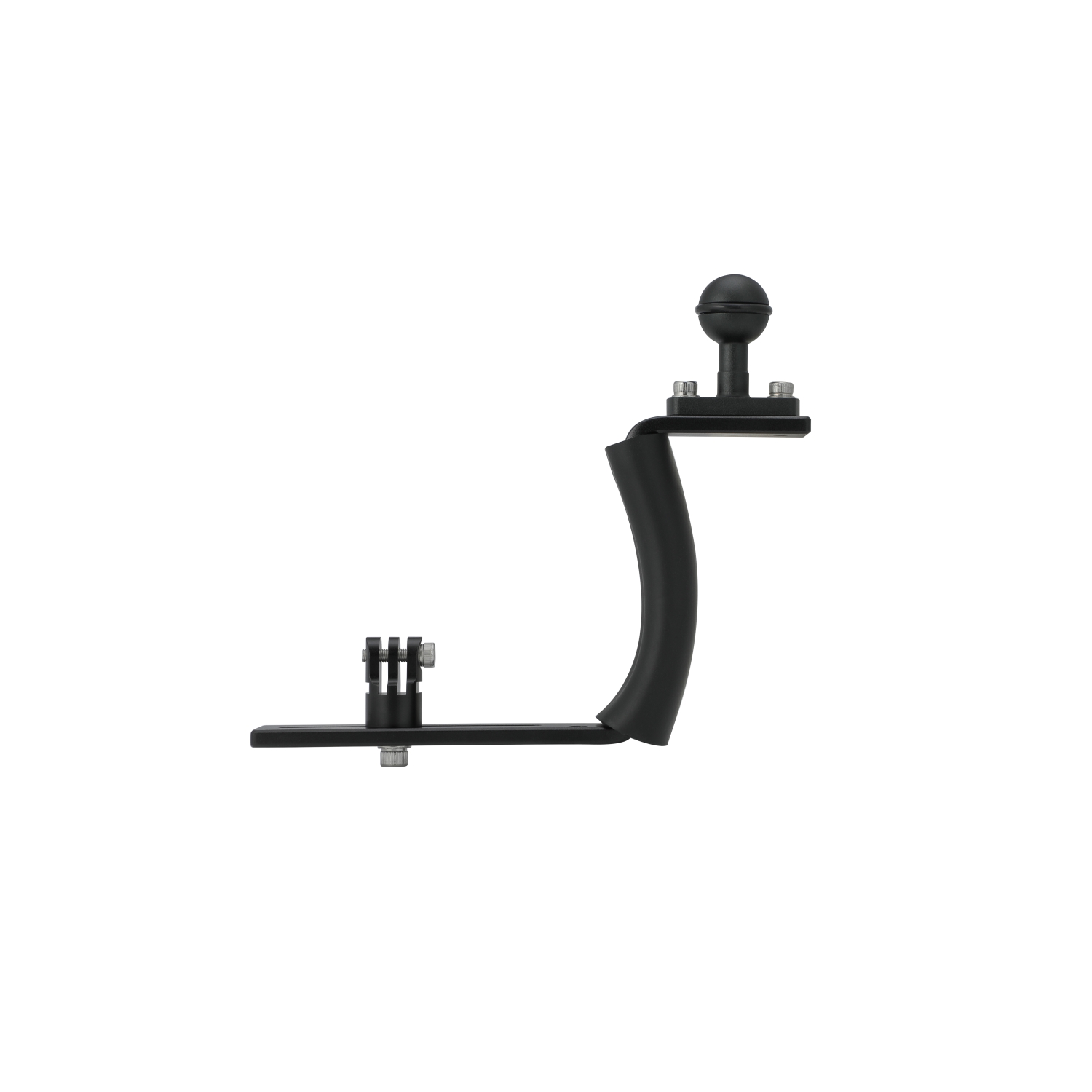 This compact version of our popular mounting tray has a one-inch ball at the top of the arm and comes with an anodized aluminum Go Pro® adapter, screws and a wrench.